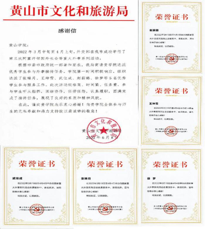 成立黄山学院来华留学生突发事件应急领导小组、黄山学院学生出国(境)资助工作领导组、黄山学院来华留学生奖助学金评审工作领导组等专项工作领导组。出台国际化办学文件22项,健全国际化办学体制机制,促进国际化办学工作规范、有序开展。