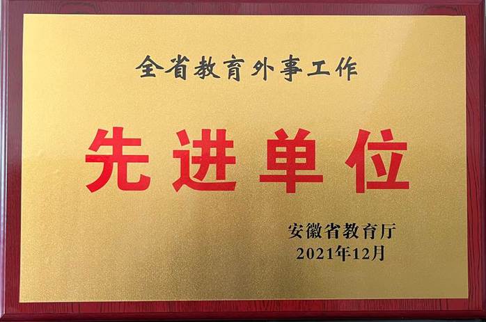 2021年12月,我校荣获“安徽省教育外事工作先进单位”称号